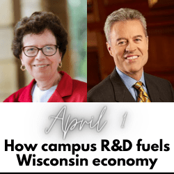 The chancellors of Wisconsin’s two largest public research universities and a venture capitalist whose firm and partners focus on campus-based innovation will take part in a 10 a.m. Thursday, April 1 webinar produced by the Wisconsin Technology Council.